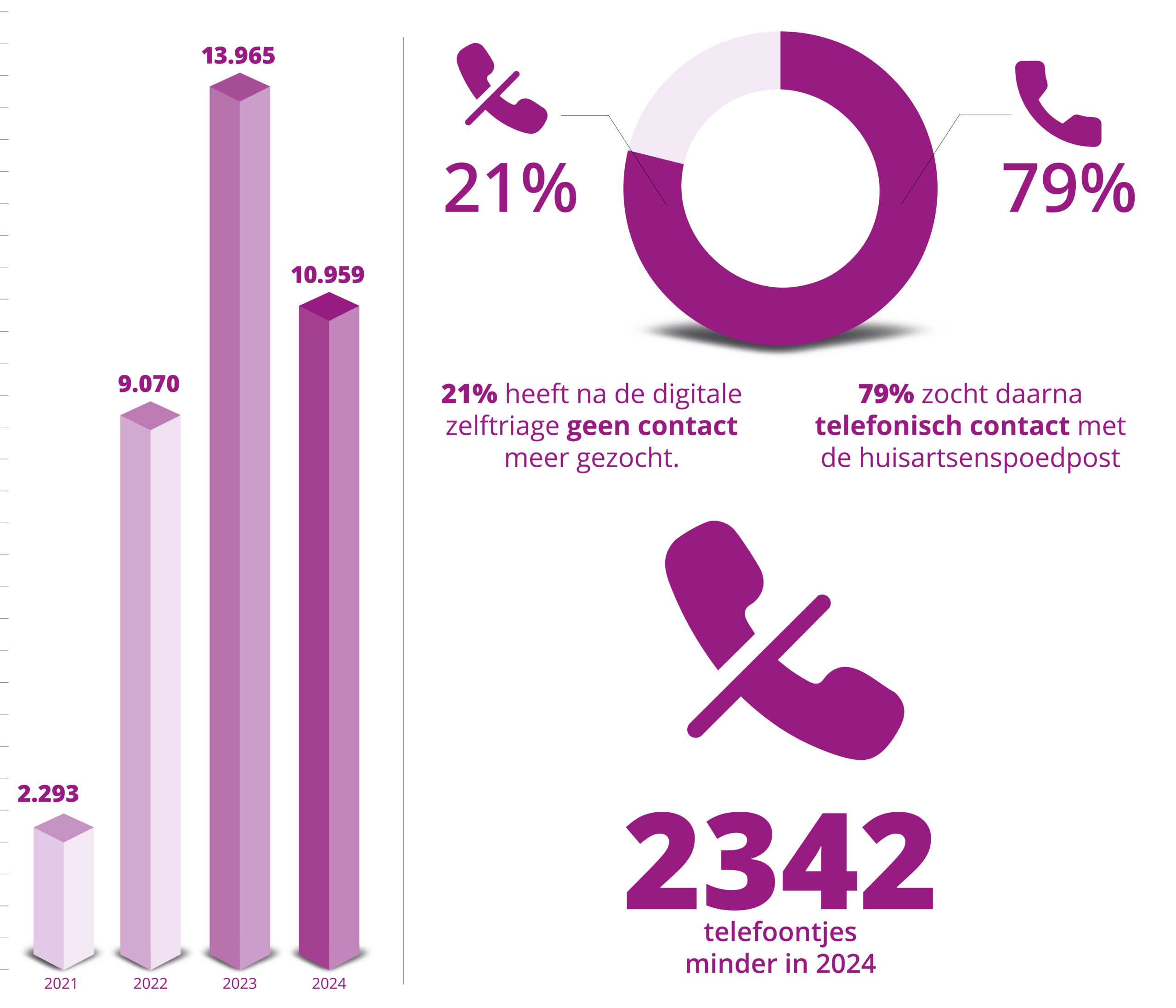 Dit is terug te zien in het aantal telefonische contacten met de spoedpost, dat sinds de integratie van zelftriage met de telefonie fors is gedaald.